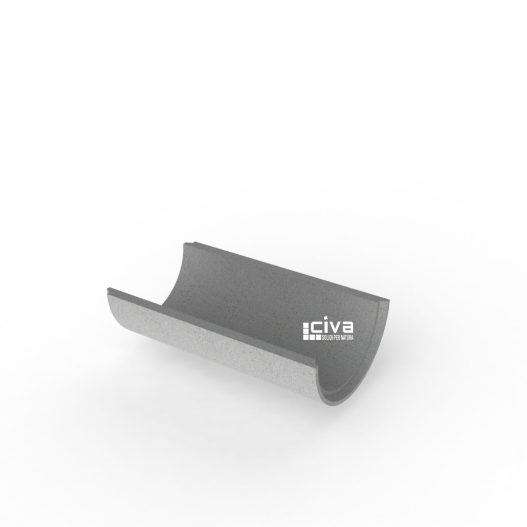I mezzi tubi a canale sono manufatti in calcestruzzo gettato. Il collegamento degli elementi avviene mediante incastro a mezzo spessore.